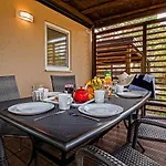 Beach facilities at the accommodation include umbrellas. The Mobile Homes Camp provides easy access to activities such as snorkelling, diving, and cycling.